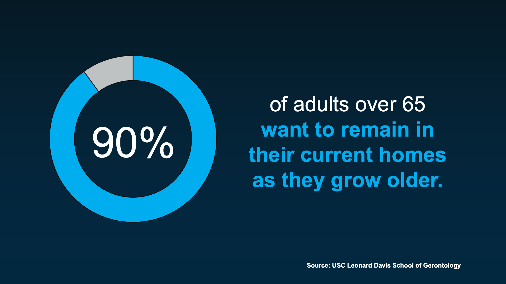 The USC Leonard Davis School of Gerontology found about 90% of adults over 65 prefer to stay in their homes as they get older (see below):