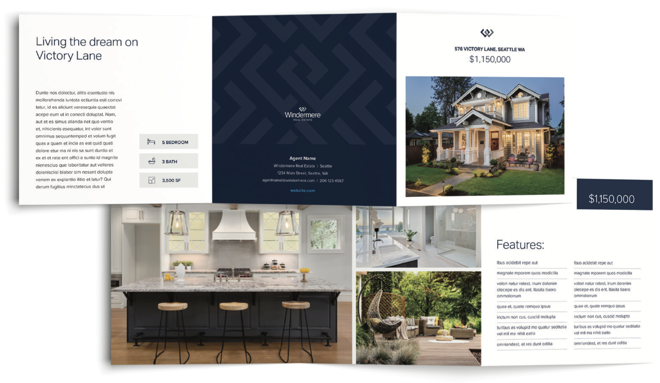 Once we’ve captured great photos of your property, I can create high-end print marketing materials that inspire prospective buyers. These may include brochures, trifolds, informational one-sheets or in-home signage. I may also send Just Listed postcards to neighbors and targeted qualified buyers.