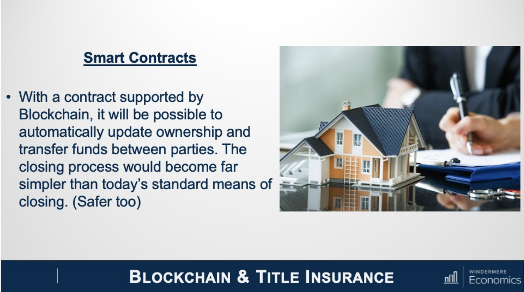 And then there’s smart contracts, which are actually a form of e-closing that is already beginning to be embraced by some in the industry. This technology makes the transfer of ownership almost seamless. Literally, it would take just a few clicks of a mouse. And this is also a massive benefit for the industry as the closing process would also change dramatically and become far more effortless and less time consuming than today’s standard means of closing on a home purchase.